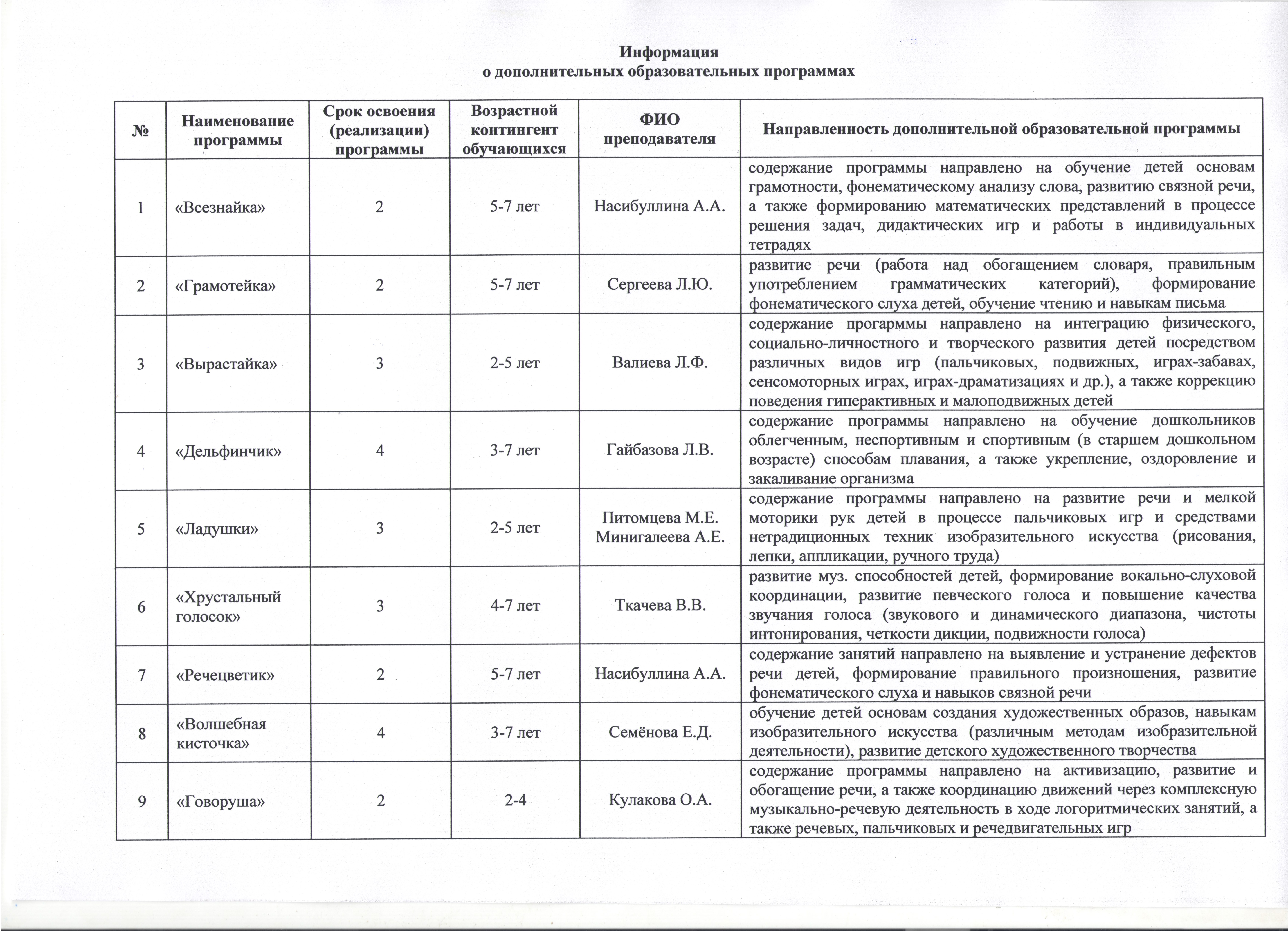 Информация о дополнительных образовательных программах на 2025-2026 учебный год
